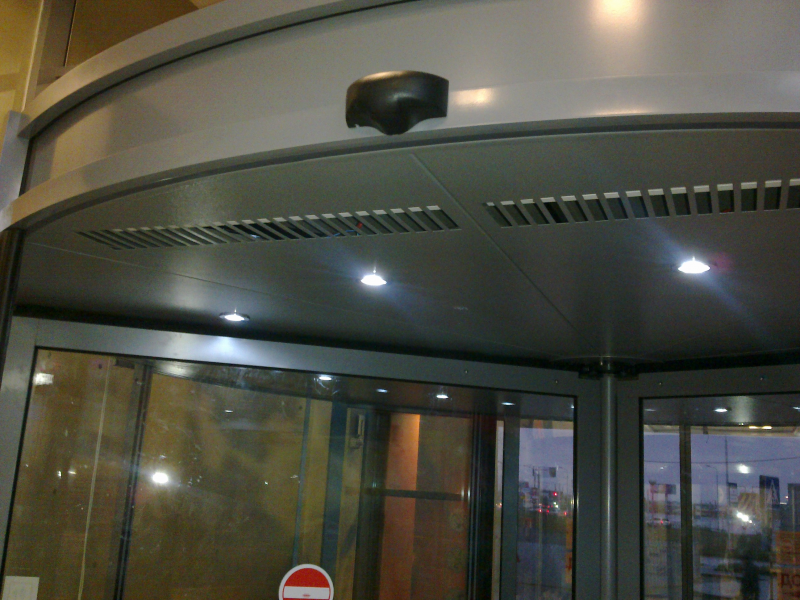 Торговый центр "Зелёный остров" - установка револьверной автоматической двери со встроенной тепловой завесой и ночным экраном d3600мм (2011г.)